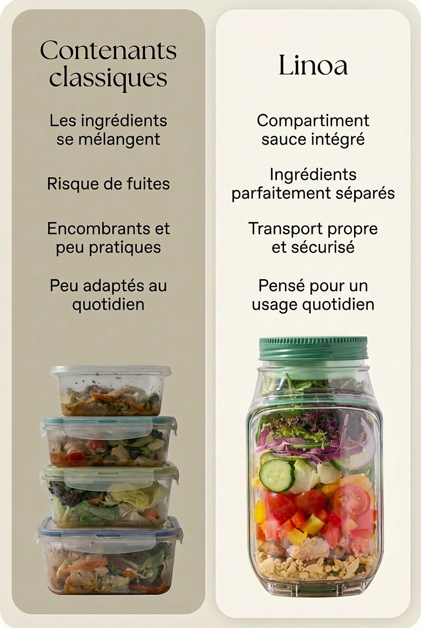 Linoa offre une capacité suffisante pour un repas complet et équilibré, parfait pour le déjeuner au travail ou en déplacement.